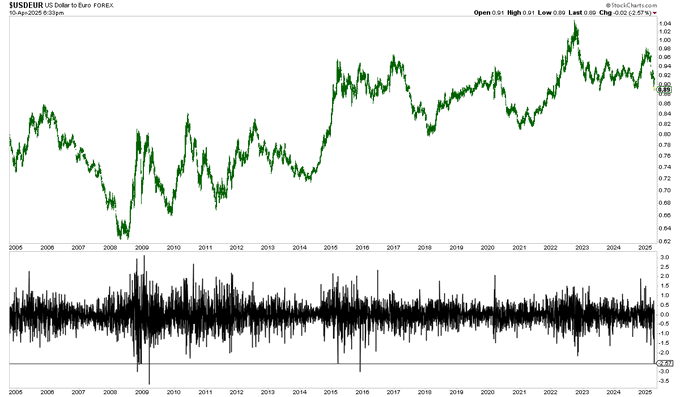 而很有意思的一点是,其实从外汇市场常见的利差角度来看,美债收益率与德债收益率的利差拉大,本身应该是不利于欧元的。但是,如果当资金因对特朗普政策的恐慌而全面逃离美国涌入欧洲时,传统的利差逻辑线似乎也并不难打破。