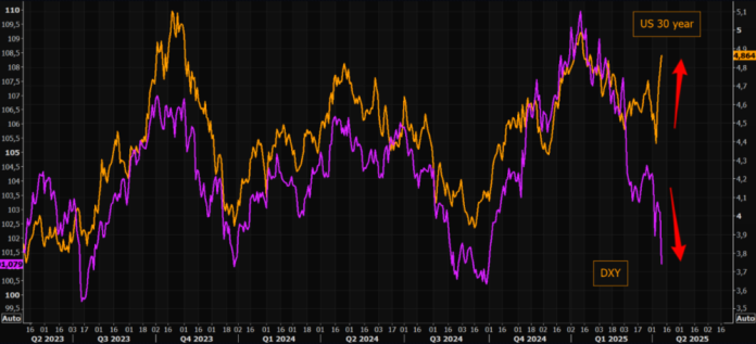 而越来越多的分析师和投资者也指出,本周美国国债的大幅抛售和美元的疲软,正表明人们对全球最大经济体——美国的信心出现了动摇。
