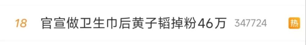 前脚官宣跨界做卫生巾,在直播间里送出5万份卫生巾,后脚就翻车了?4月13日,#官宣做卫生巾后黄子韬掉粉46万# 登上微博热搜。日前,黄子韬高调宣布了跨界投身卫生巾事业的消息。