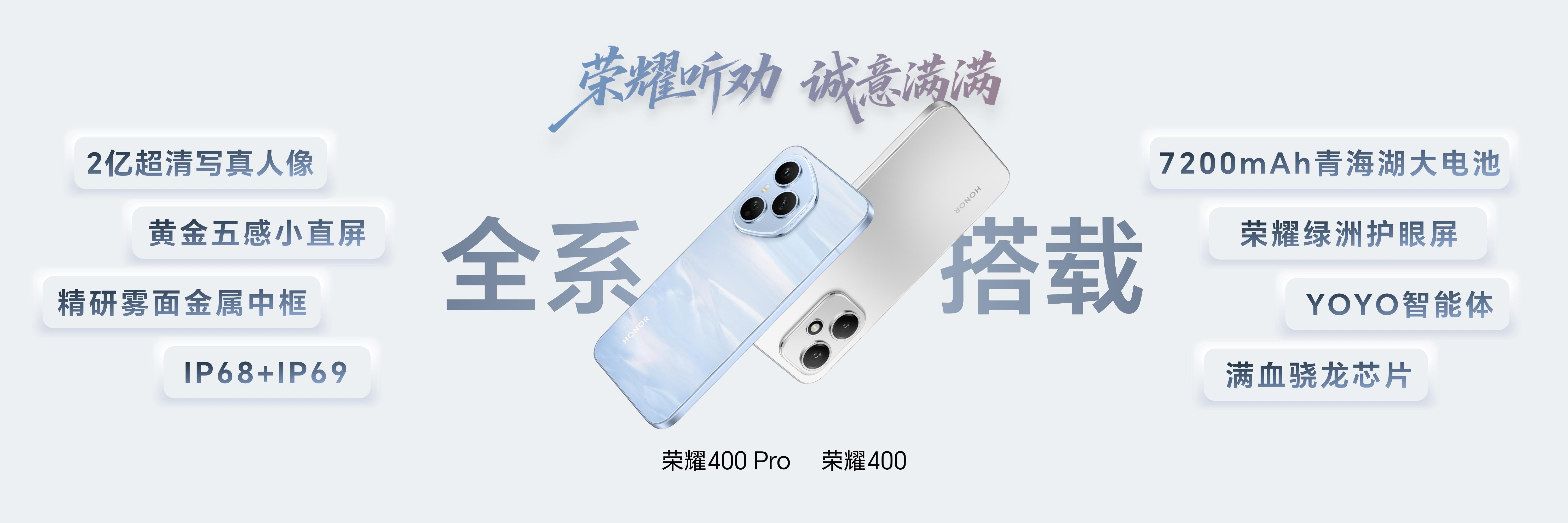 荣耀400全系性能升级,标准版全球首次搭载高通骁龙7Gen4处理器,Pro版搭载满血版第三代骁龙8旗舰芯片,内置荣耀自研幻影引擎,带来满帧沉浸式体验。